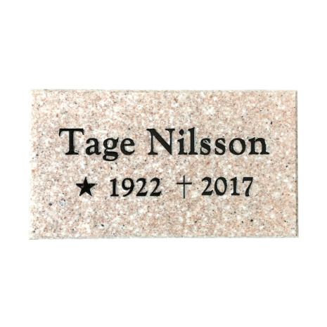 Graverad skylt i 12mm röd granitkomposit för att minnas anhöriga. Stenkomposit är beständigt i utomhusmiljöer och kan med fördel limmas på befintliga familjegravstenar. Färgfylls med svart text; möjlighet finns att välja guld, silver eller vit text.